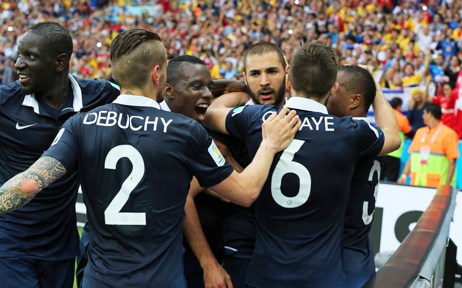 Francia: Hugo Lloris; Mathieu Debuchy, Mamadou Sakho, Raphael Varane, Patrice Evra; Yohan Cabaye, Paul Pogba, Blaise Matuidi, Mathieu Valbuena; Karim Benzema, Antoine Griezmann.