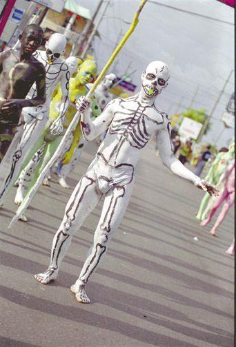 Con sus guantes blancos y su esqueleto andante, se cuenta entre los más antiguos protagonistas de los carnavales dominicanos. Su misión suprema: "meter miedo", pero con gracia, a los curiosos que pueblan las calles durante los desfiles. Como la muerte misma, está en todos lados. Dígase en el caso, en todos los pueblos que hacen del carnaval su fiesta y su gran oportunidad de ponerse un disfraz para se otra cosa u otro ser, al menos durante unas horas. Siempre se viste igual: sobre el mameluco negro que cubre todo el cuerpo, la calavera pintada… todo un espanto andante y paradójicamente divertido.