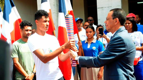 El niño Ian Mercedes, del Liceo Nuestra Señora del Carmen pasó la antorcha al presidente del Comité Olímpico Dominicano, Luis Mejía, este a su vez al director del Instituto Nacional de Educación Física, Jorge Minaya, quien la cedió al ministro de Educación; Antonio Peña Mirabal quien por último entregó al atleta de los 400 metros con vallas, Juander Santos.