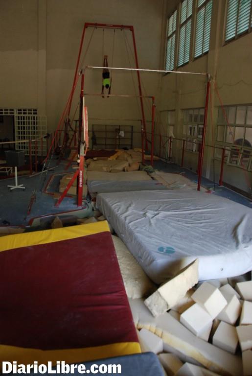 SANTO DOMINGO. Colchones destruidos y aparatos en mal estado, ambiente que se asemeja a una vieja reparadora de colchones, es lo que se observa en el Pabellón de Gimnasia del Parque del Este.