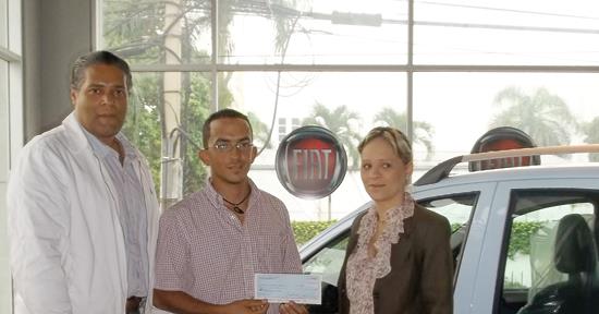 Fernández recibió el premio de RD$6 mil de parte del presidente de Ligasvirtualf1, Cristóbal Justiniano, y de la directora de mercadeo de FIAT, Rocío Rivera, patrocinadores del fantasy game.