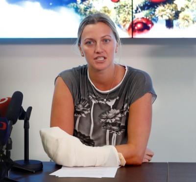 Kvitova sufrió un asalto con un cuchillo el 20 de diciembre, que le provocó lesiones en los cinco dedos y en dos nervios de la mano izquierda, con la que juega al tenis, al intentar defenderse del agresor en su domicilio de Prostejov (este del país).