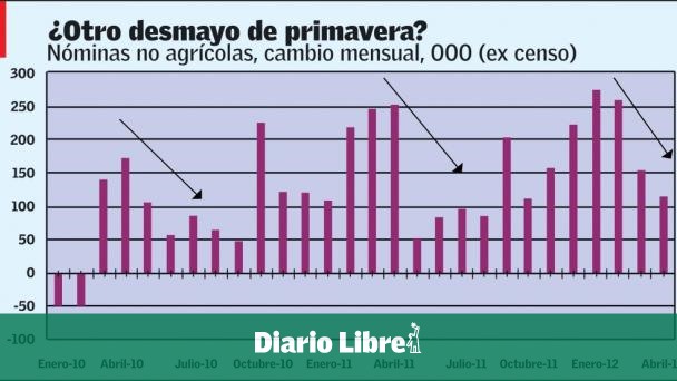 Por segundo mes consecutivo, el mercado laboral estadounidense ha decepcionado, de nuevo surgen interrogantes acerca de si la recuperación económica está verdaderamente arraigada. Las nóminas no agrícolas subieron apenas 115,000 en abril desde marzo. Mientras que la tasa de desempleo disminuyó a 8.1%, la más baja desde principios del 2009, de 8.2%, pero lo hizo por las razones equivocadas: la fuerza laboral (los que trabajan o buscan trabajo) disminuyó en 342,000.