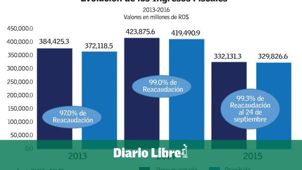 En el comunicado se informa que las recaudaciones fiscales del 2013 y 2014, alcanzaron el 97% y 99% de los estimados. Y que en hasta el 24 de septiembre de 2015, el desempeño es de un 99.3% de lo estimado.