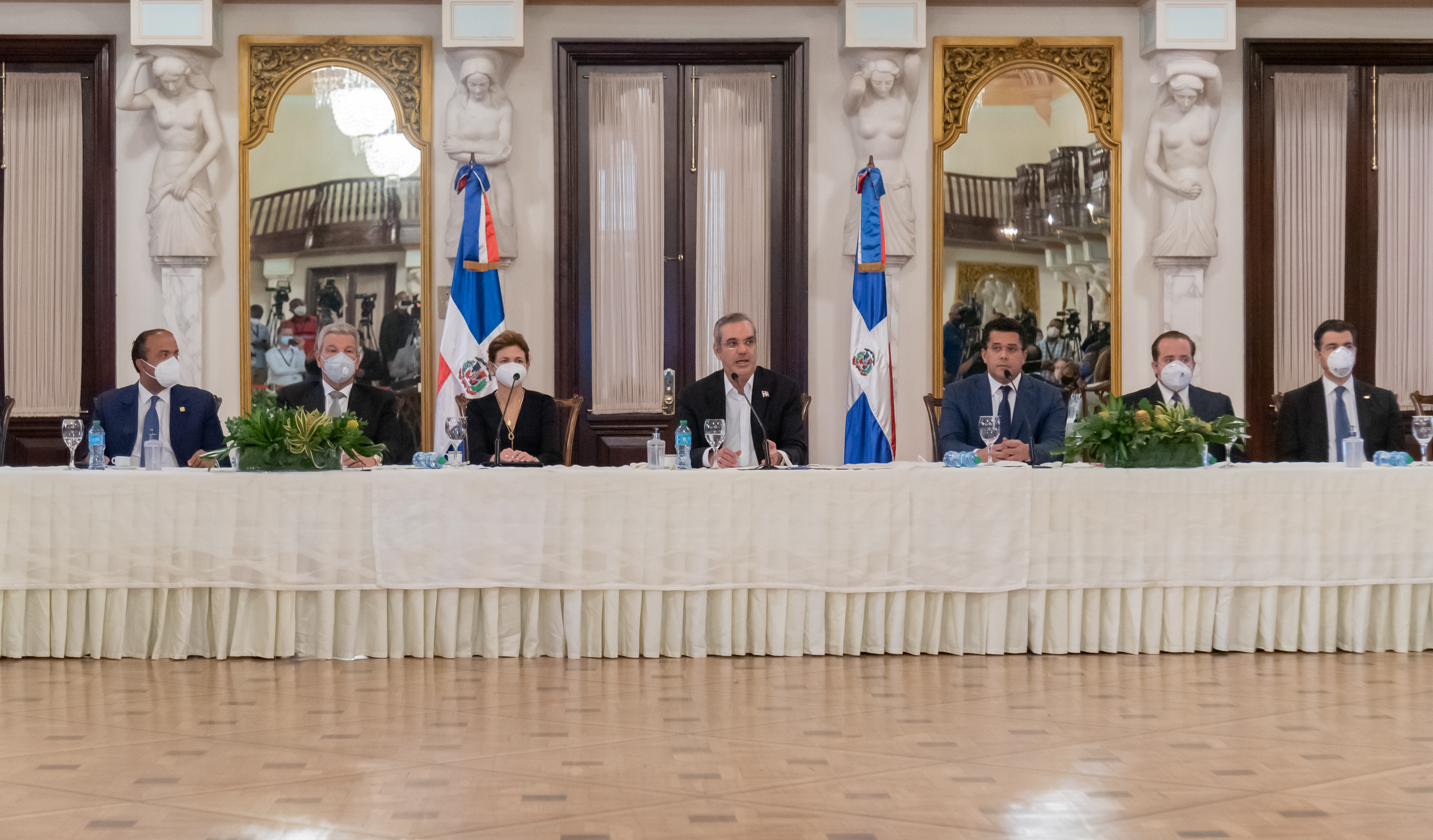 Abinader, quien sólo se hizo acompañar de la vocera de la Presidencia, Milagros Germán, el director de Información y Prensa de la Presidencia, Daniel García Archibald, y su asistente personal Mercedes Pichardo, respondió preguntas por más de una hora.