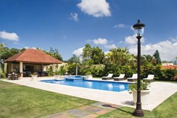 Para el área de la piscina, ubicada en el jardín, se escogió la coralina porque es un material que tiene el aspecto y la textura perfecta para este espacio, ya que tiene la característica de que no se calienta.