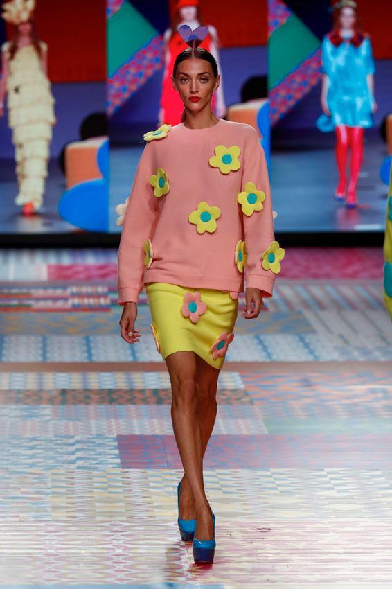 La elección de las prendas dependerá de cada mujer, la ocasión y lo que le apetezca en ese momento y bajo esta mirada Agatha Ruiz de la Prada propone una extensa colección en la que prima el chándal rejuvenecido con lurex y lentejuelas.