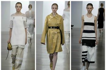 Costa definió la síntesis del estilo Calvin Klein con 22 propuestas que arrancaron con una mujer marinera, con faldas por debajo de la rodilla y rayas horizontales combinando los eternos blanco y negro, para ir dejando paso a paso al espíritu más rockero y atrevido de la casa.