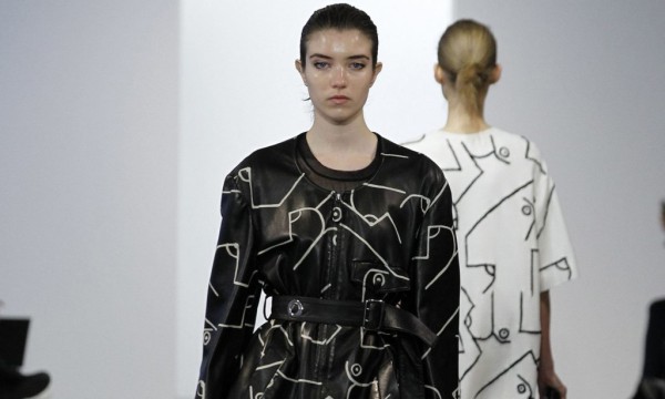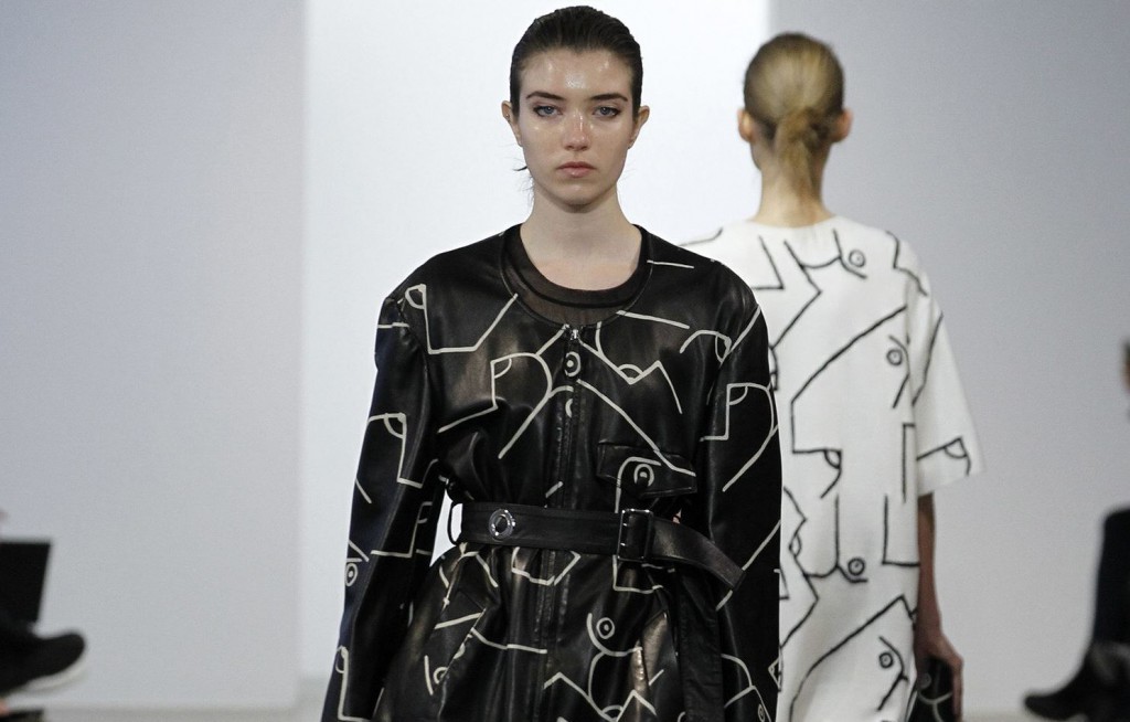 A modo de ruptura, Calvin Klein apostó en el cierre por un par de piezas con estampados de inspiración cubista, que no abandonaron la estética minimalista pero que despertaron curiosidad por su rigidez al jugar con el efecto neopreno.