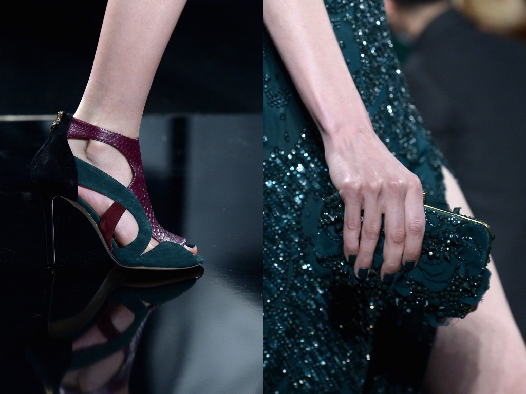 Una armonía perfecta de granate, color blush, teal y negro. Trajes de pantalón y chaqueta, abrigos con cuellos de piel, vestidos de coctel y esos exquisitos trajes largos en looks monocromáticos de esos que el diseñador logra magistralmente.
