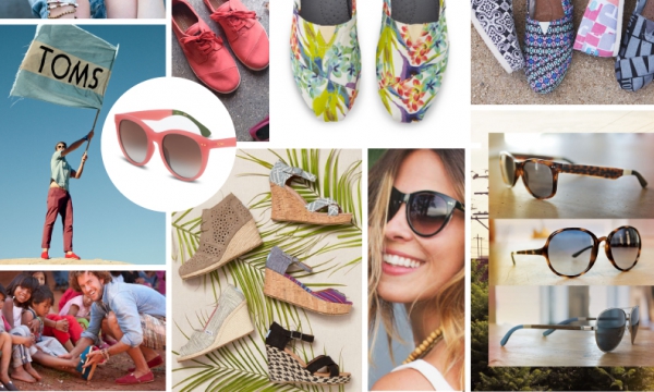 Unidos por el lema "One of one" (uno para cada uno) esta compañía creada por el estadounidense Blake Mycoskie, empezó en el 2006 ofreciendo alpargatas hechas de materiales ecológicos y sostenibles para el medio ambiente. Por cada modelo que venden, un niño de escasos recursos recibe un par de zapatos. Luego, en el 2011, TOMS lanza una línea de lentes de sol con los que por cada compra ayudamos a restaurar la vista de una persona necesitadas por medio de cirugías, anteojos recetados o el tratamiento médico.