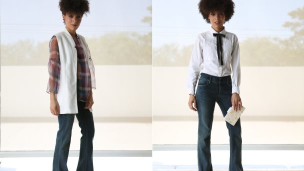 “Ambos looks pueden usarse tanto para el día como para la noche”, explica Pamela, “Entiendo que el pantalón campana lo puedes adaptar, también depende del material del pantalón, pues no solo los hay en denim, los de tela también lucen muy bonitos”.