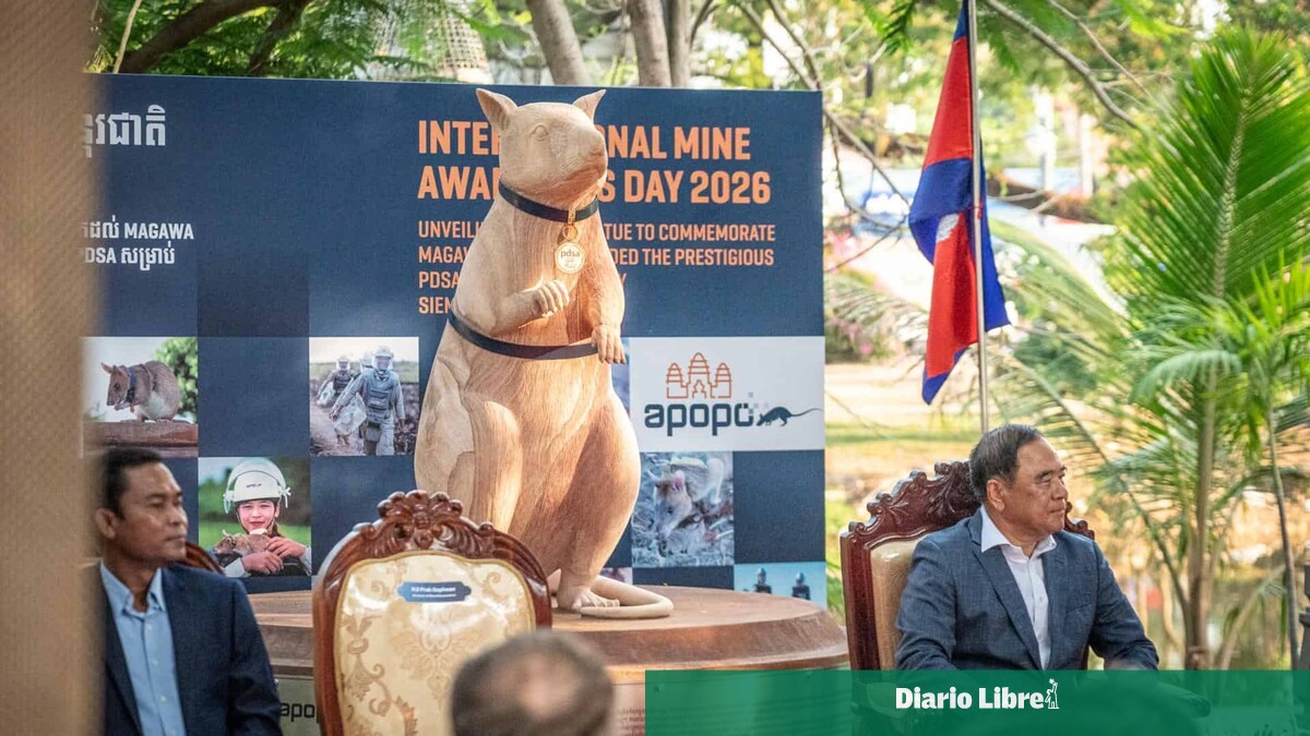 La estatua de Magawa, que falleció a la avanzada edad de ocho años en 2022, se encuentra en la ciudad camboyana de Siem Reap, famosa por el cercano complejo de templos de Angkor, Patrimonio de la Humanidad de la Unesco.