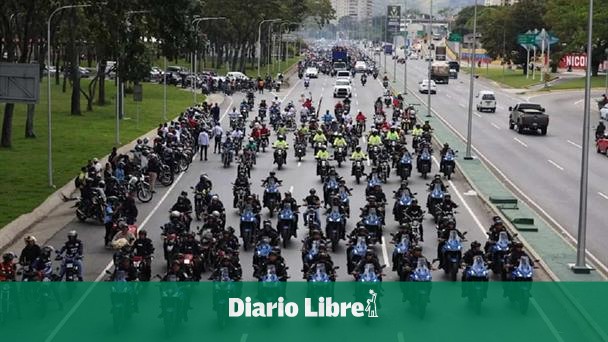 La caravana está encabezada por motociclistas que, en su mayoría, van vestidos de blanco, mientras portan banderas de Venezuela y tocan las bocinas de sus vehículos.