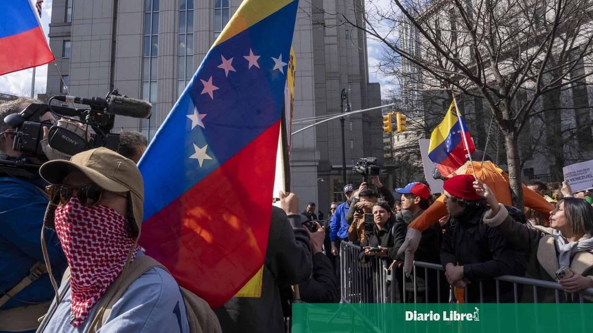 Personas ondean banderas de Venezuela durante una manifestación frente a la corte federal de Nueva York (EE. UU.), horas antes de que el depuesto presidente de Venezuela, Nicolás Maduro, y su esposa, Cilia Flores, comparezcan de nuevo ante la justicia estadounidense. (EFE/ ÁNGEL COLMENARES)