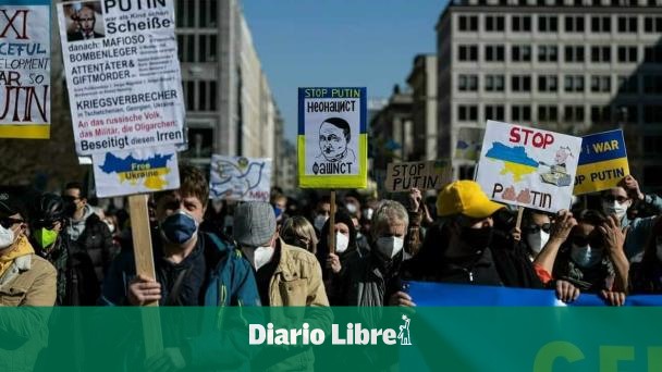 Las comparaciones no llegan solo desde Moscú. En las manifestaciones a favor de Ucrania son habituales las referencias a la Segunda Guerra Mundial, especialmente caricaturizando a Putin como Adolf Hitler.