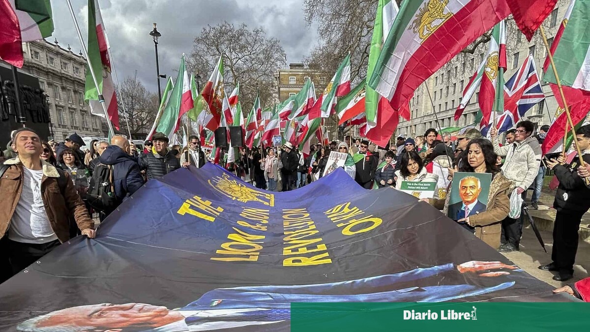 Convocados por la organización 'Stage of Freedom' frente a Downing Street, la residencia del primer ministro británico, los asistentes portaban las banderas iraníes anteriores al régimen islámico (con un león en el centro) y retratos de Reza Pahlavi, y gritaron numerosas consignas para reclamar un nuevo estado encabezado por este último, quien ha vivido en el exilio en EE. UU.