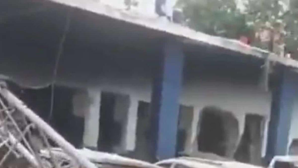 Un video que circula en redes sociales y en medios locales haitianos muestra la estructura de la policía de Mirebalais destruida.