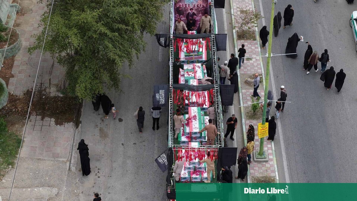 Otras imágenes mostraban ataúdes adornados con banderas iraníes, algunos con la fotografía de un niño.