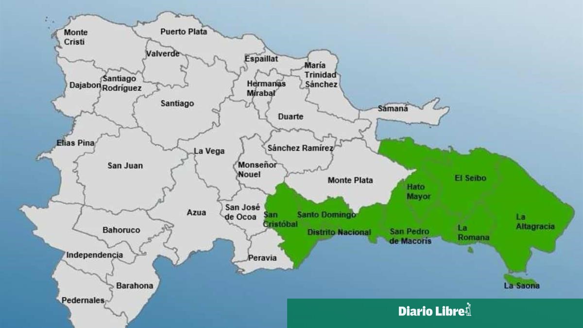 Las provincias en alerta verde son: La Altagracia, San Pedro de Macorís, La Romana, Hato Mayor, El Seibo, Distrito Nacional, Santo Domingo y San Cristóbal.