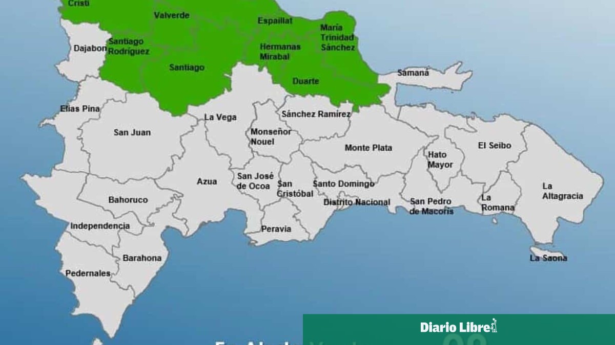 En alerta verde están: Espaillat, Montecristi, Hermanas Mirabal, María Trinidad Sánchez, Puerto Plata, Valverde, Santiago Rodríguez, Santiago y Duarte.