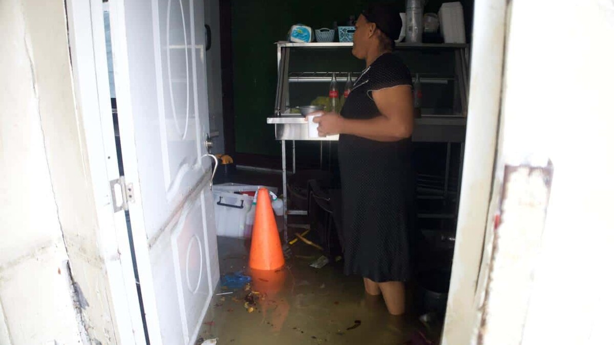 Desde las 4:00 de la madrugada, doña Ángela no ha podido volver a dormir. Las fuertes lluvias irrumpieron su descanso cuando en cuestión de minutos, el agua comenzó a entrar a su casa hasta dejarla completamente inundada, en el sector Ensanche Quisqueya, en el Distrito Nacional.