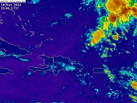 “Permanece la incidencia de una vaguada sobre la porción oriental del país, asociada a un sistema frontal, la misma se combina con los efectos locales de (calentamiento diurno y orográfico), ambos favorecerán las concentraciones nubosas para que se generen nublados en la tarde con aguaceros moderados a fuertes localmente sobre provincias de las regiones: norte, noreste, sureste y la cordillera Central”, sostuvo la Oficina Nacional de Meteorología (Onamet).