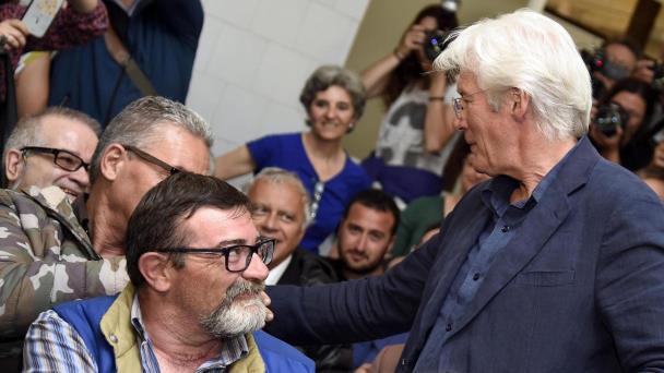 Antes de la presentación de la película, Gere visitó la escuela de lengua y cultura italianas de San Egidio y conversó con alumnos, profesores y refugiados.