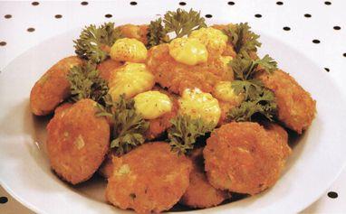 Calienta el aceite en una sartén y fríe las croquetas por ambos lados hasta que doren bien. Esparce perejil y sírvelas con mayonesa.