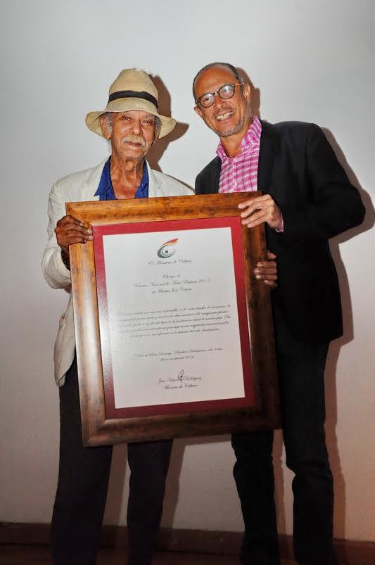 SANTO DOMINGO. El Ministerio de Cultura (MINC) entregó al pintor José Cestero el Premio Nacional de Artes Plásticas, correspondiente al año 2015, por sus altos valores artísticos en las artes visuales nacionales y su trayectoria internacional.
