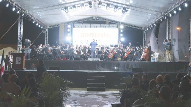 La orquesta Filarmónica La Trinitaria, integrada por reputados músicos y bajo la dirección del maestro Darío Estrella arrancó con la presentación de un programa que incluyó piezas como Sueño de Oro teniendo como pianista al director.