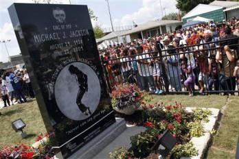 Entre fuertes medidas de seguridad, los admiradores eran guiados por el complejo hasta la entrada del gran mausoleo en el que descansan los restos del "rey del pop" y donde los gestores del cementerio dispusieron una estructura para depositar flores, carteles y retratos del cantante venidos muchas partes del globo.