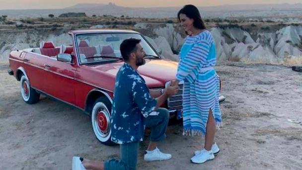El actor aprovechó sus vacaciones en Turquía para arrodillarse ante Valeria Marín para mostrar el éxito de su cirugía en la rodilla