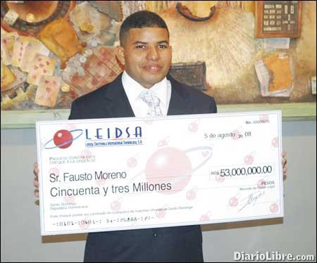 SD. En una lujosa limosina y acompañado de algunos familiares, llegó a la oficina de Leidsa Fausto Moreno, ganador de 53 millones de pesos.