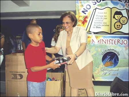 SANTO DOMINGO. La Iglesia Cristiana Levantando al caído y el Ministerio no solo de Pan, celebró "Te Regalo Una Sonrisa a cambio de un Juguete". Este evento encabezado por la Pastora, Yanny Cury, presidenta del Ministerio, se realizó con la ayuda de hermanos de la congregación y personas identificadas con esta institución. Más de 2000 niños recibieron sus juguetes.