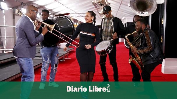 La anfitriona del Grammy Alicia Keys ayudó a desenrollar la alfombra roja y bailó al ritmo de funk mientras Trombone Shorty tocaba con miembros de su banda.