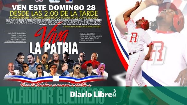 SANTO DOMINGO. Una gran caravana y dos espectaculares conciertos para recibir al gigante pelotero nacido en Don Gregorio Nizao de la Provincia Peravia Vladimir Guerrero quien pasó a la historia del béisbol en su más alto honor que es inmortalizarse en Cooperstown, son parte de los preparativos para recibirlo, según se informó en un documento de prensa enviado a Diario Libre.
