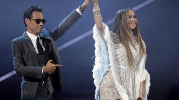 Marc Anthony interpretó hoy los temas “I need to know”, “Tu amor me hace bien” y “Vivir mi vida”, pero la gran historia de la velada llegó inmediatamente después, cuando se lanzó a un impactante dueto con su exmujer Jennifer López cantando una versión de “Olvídame y pega la vuelta”, de Pimpinela, que cautivó al público.