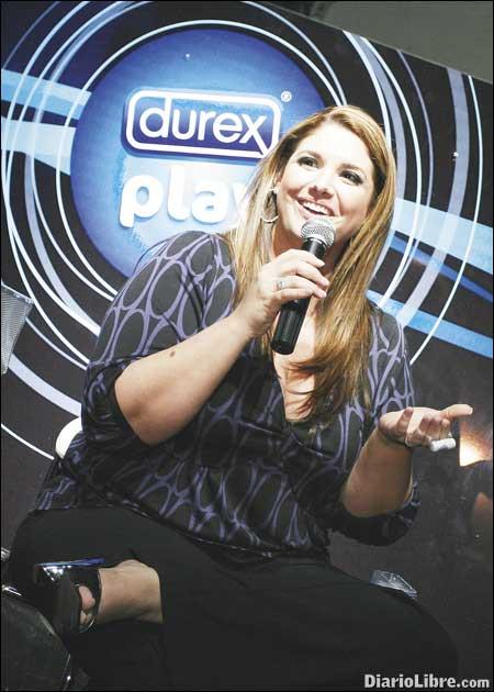 La joven sexóloga puertorriqueña presentó en Praia varios nuevos productos de la línea Durex Play, entre ellos un anillo vibrador para el pene, lubricantes diseñados para dar más placer y condones de nuevo tipo.