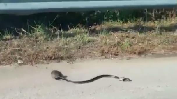 VIDEO | Vídeo: Rata salva a su cría de la mordida de una culebra