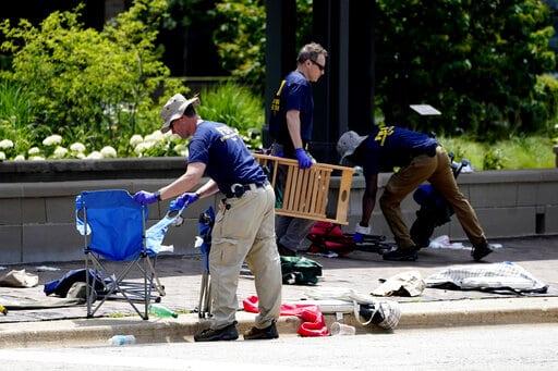 Un portavoz de la Fuerza Especial contra Delitos Mayores del condado de Lake dijo en conferencia de prensa que el presunto atacante, quien fue arrestado el lunes por la noche, usó un rifle de alto poder “similar a un AR-15” para disparar más de 70 balas desde lo alto de un edificio comercial contra una multitud reunida para ver el desfile en Highland Park, una lujosa comunidad de unas 30,000 personas a orillas del lago Michigan.