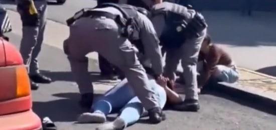 El agente procede a perseguirla y le dispara con el arma eléctrica Taser, procediendo la dama a cae al pavimento y es entonces que dos agentes se suman a la misión, “las manos atrás”, se escucha a alguien decir, mientras mantienen a la dama boca abajo en el suelo.