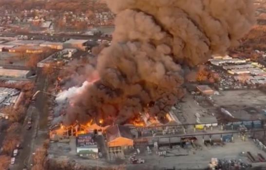 Un incendio arrasó ayer lunes un almacén comercial en los suburbios de Chicago y produjo una columna de humo que podía verse a millas de distancia.