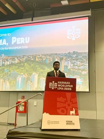 El estudiante dominicano Nirso Esmith Díaz Pérez lideró la única representación del Caribe insular en el Harvard World Model United Nations (WorldMUN) 2026, celebrado del 15 al 19 de marzo en Lima, Perú, al encabezar una delegación de 13 estudiantes universitarios y preuniversitarios.