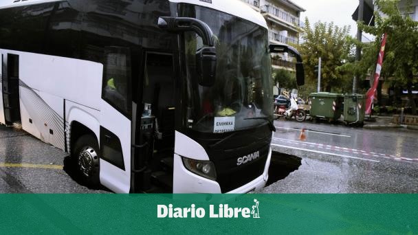 SALÓNICA. Un autobús que transportaba trabajadores de una refinería de petróleo cayó el viernes parcialmente en un socavón en la segunda ciudad más poblada de Grecia el viernes, mientras una tormenta sigue azotando el país.