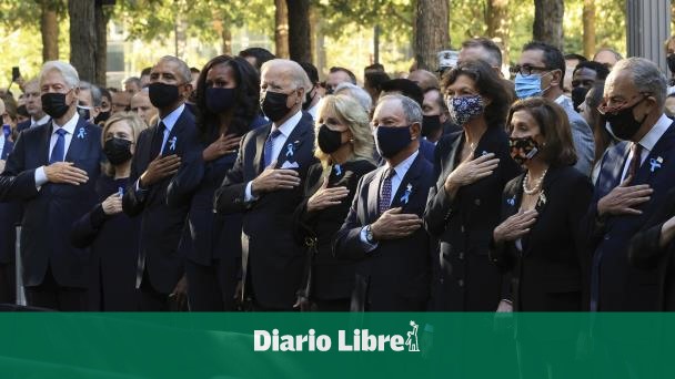 Los presidentes Joe Biden, Barack Obama y Bill Clinton se reunieron en el lugar donde cayeron las torres del World Trade Center hace dos décadas. Cada uno portaba cintas azules y se cubrió el corazón con las manos mientras una procesión avanzaba con una bandera estadounidense a través del monumento ante cientos de personas, algunas con fotos de los seres queridos que perdieron en los ataques.