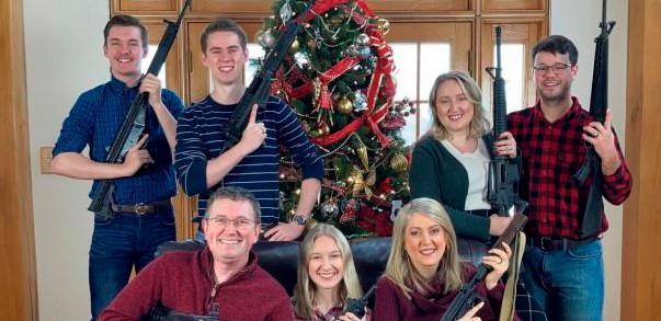 Thomas Massie, legislador republicano por Kentucky, publicó en la red social Twitter una instantánea en la que se le ve sonriente y armado junto a lo que parecen ser familiares, también con armas, junto a un árbol de Navidad.