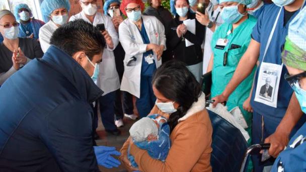 VIDEO | Mujer da a luz en coma con COVID-19 y abraza a su bebé recuperada en 10 días