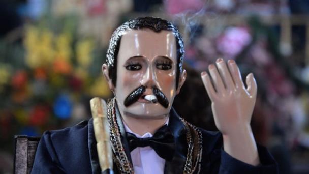 Cientos de guatemaltecos abarrotaron un pequeño templo al oeste del país para adorar a San Simón, un santo popular, no reconocido por la iglesia católica producto del sincretismo religioso.