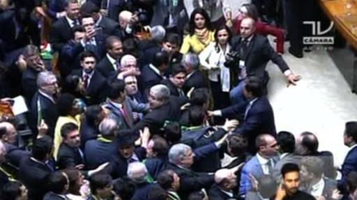 En medio de consignas, gritos y empujones, los diputados brasileños sesionaban este domingo para decidir si aprueban el proceso de juicio político contra la presidenta para que avance al Senado.